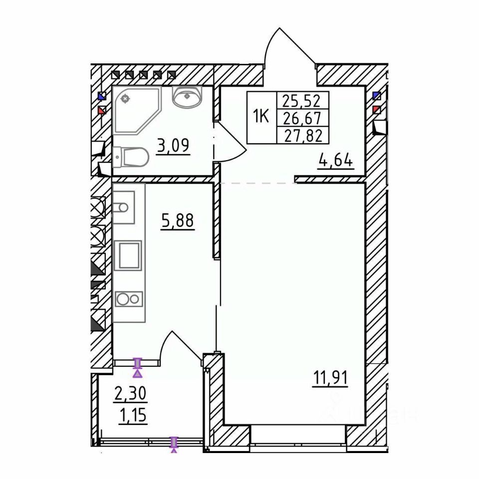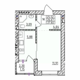 Продаётся 1-комнатная квартира в строящемся доме (Дом 3.3), срок сдачи: III-кв. 2026, общей площадью 26.67 кв.м., на 7 этаже. Новый жилой комплекс "Комфорт" от застройщика "СтройИнвестиция" расположен по адресу: г. Зеленоградск, посёлок Вишнёвое, Лесная улица.