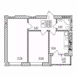 Продаётся 2-комнатная квартира в строящемся доме (Дом 3.3), срок сдачи: III-кв. 2026, общей площадью 50.69 кв.м., на 7 этаже. Новый жилой комплекс "Комфорт" от застройщика "СтройИнвестиция" расположен по адресу: г. Зеленоградск, посёлок Вишнёвое, Лесная улица.