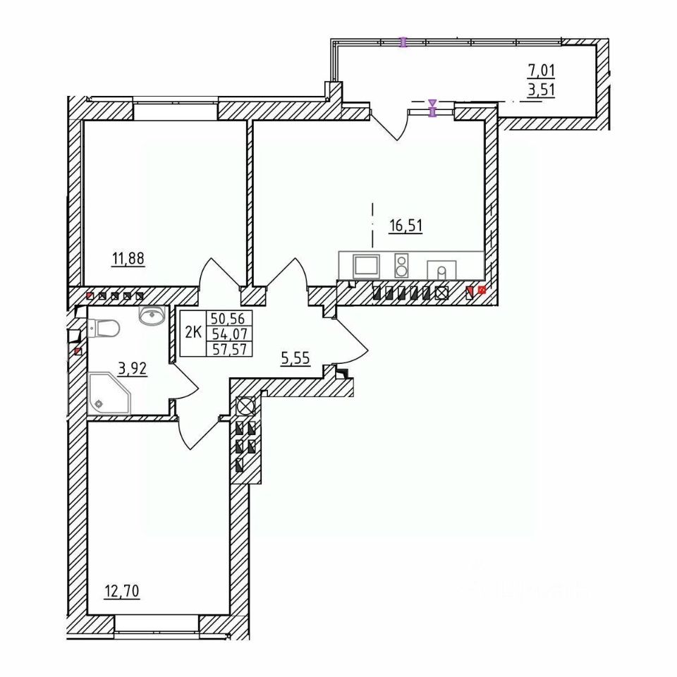 Продаётся 2-комнатная квартира в строящемся доме (Дом 3.3), срок сдачи: III-кв. 2026, общей площадью 54.44 кв.м., на 7 этаже. Новый жилой комплекс "Комфорт" от застройщика "СтройИнвестиция" расположен по адресу: г. Зеленоградск, посёлок Вишнёвое, Лесная улица.