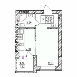 Продаётся 1-комнатная квартира в строящемся доме (Дом 3.3), срок сдачи: III-кв. 2026, общей площадью 26.67 кв.м., на 2 этаже. Новый жилой комплекс "Комфорт" от застройщика "СтройИнвестиция" расположен по адресу: г. Зеленоградск, посёлок Вишнёвое, Лесная улица.
