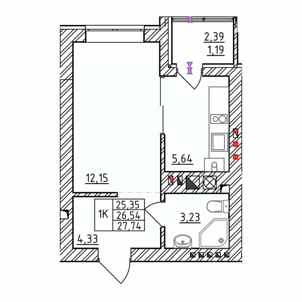 Продаётся 1-комнатная квартира в строящемся доме (Дом 3.3), срок сдачи: III-кв. 2026, общей площадью 26.54 кв.м., на 4 этаже. Новый жилой комплекс "Комфорт" от застройщика "СтройИнвестиция" расположен по адресу: г. Зеленоградск, посёлок Вишнёвое, Лесная улица.