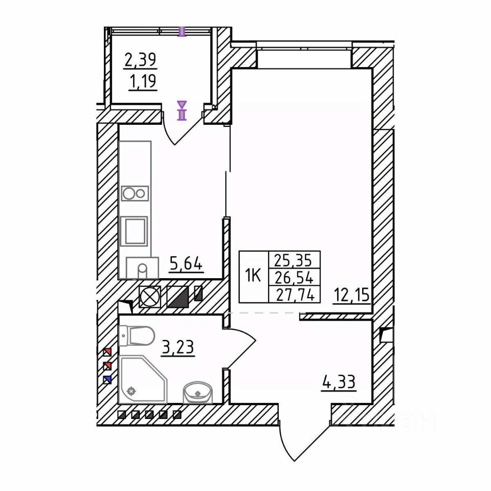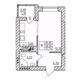 Продаётся 1-комнатная квартира в строящемся доме (Дом 3.3), срок сдачи: III-кв. 2026, общей площадью 26.54 кв.м., на 5 этаже. Новый жилой комплекс "Комфорт" от застройщика "СтройИнвестиция" расположен по адресу: г. Зеленоградск, посёлок Вишнёвое, Лесная улица.