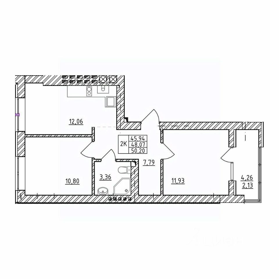 Продаётся 2-комнатная квартира в строящемся доме (Дом 3.3), срок сдачи: III-кв. 2026, общей площадью 48.07 кв.м., на 4 этаже. Новый жилой комплекс "Комфорт" от застройщика "СтройИнвестиция" расположен по адресу: г. Зеленоградск, посёлок Вишнёвое, Лесная улица.