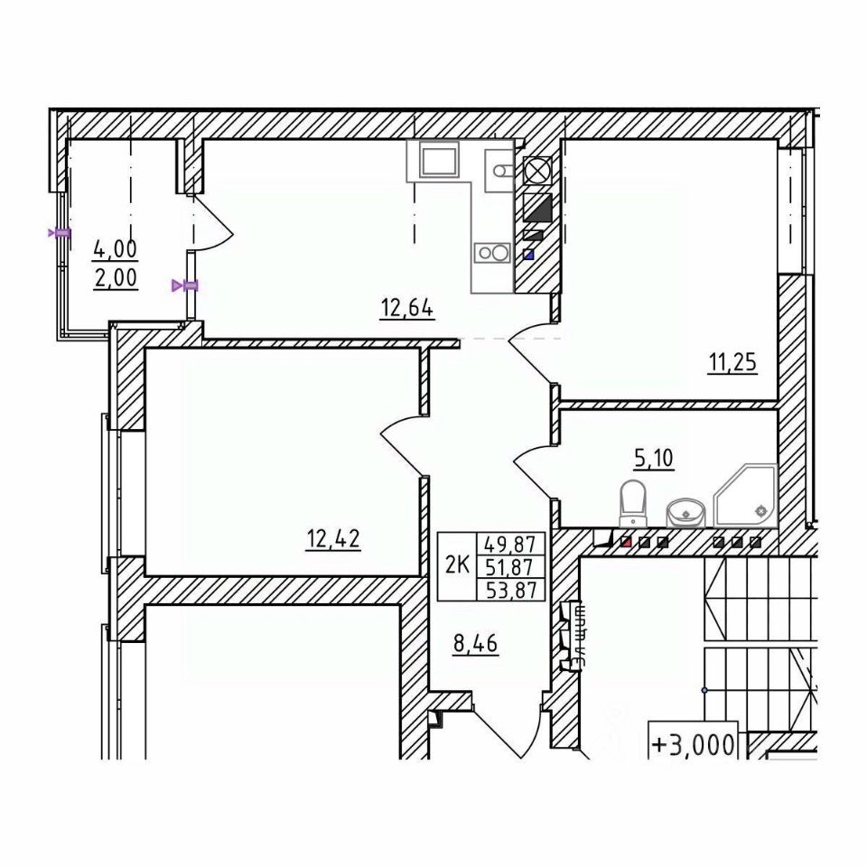 Продаётся 2-комнатная квартира в строящемся доме (Дом 3.3), срок сдачи: III-кв. 2026, общей площадью 51.87 кв.м., на 7 этаже. Новый жилой комплекс "Комфорт" от застройщика "СтройИнвестиция" расположен по адресу: г. Зеленоградск, посёлок Вишнёвое, Лесная улица.