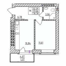 Продаётся 1-комнатная квартира в строящемся доме (Дом 3.3), срок сдачи: III-кв. 2026, общей площадью 33.66 кв.м., на 7 этаже. Новый жилой комплекс "Комфорт" от застройщика "СтройИнвестиция" расположен по адресу: г. Зеленоградск, посёлок Вишнёвое, Лесная улица.