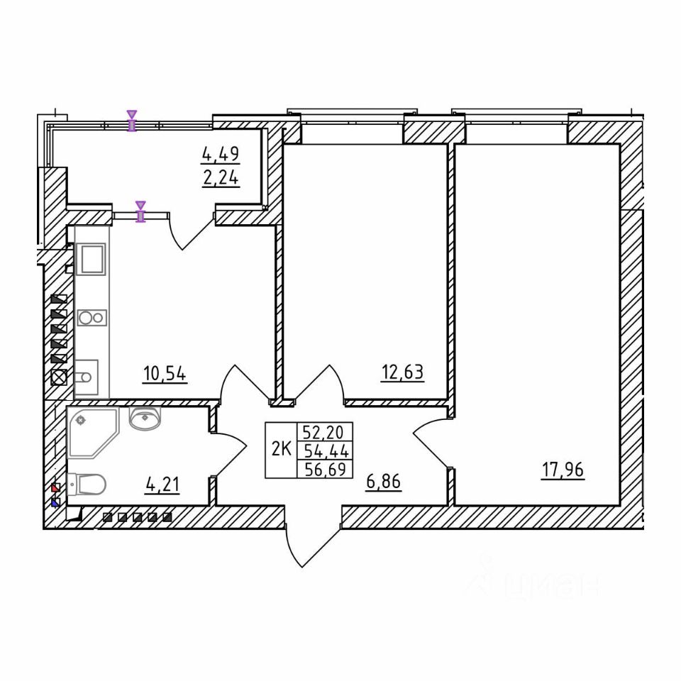 Продаётся 2-комнатная квартира в строящемся доме (Дом 3.3), срок сдачи: III-кв. 2026, общей площадью 54.07 кв.м., на 5 этаже. Новый жилой комплекс "Комфорт" от застройщика "СтройИнвестиция" расположен по адресу: г. Зеленоградск, посёлок Вишнёвое, Лесная улица.