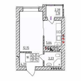 Продаётся 1-комнатная квартира в строящемся доме (Дом 3.3), срок сдачи: III-кв. 2026, общей площадью 26.54 кв.м., на 7 этаже. Новый жилой комплекс "Комфорт" от застройщика "СтройИнвестиция" расположен по адресу: г. Зеленоградск, посёлок Вишнёвое, Лесная улица.