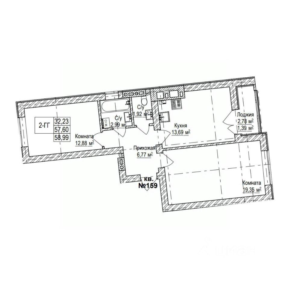 Продаётся 2-комнатная квартира в сданном доме (Арсентьева, 1к3 (Дом 4)), срок сдачи: I-кв. 2025, общей площадью 58.99 кв.м., на 1 этаже. Новый жилой комплекс "Комфорт" от застройщика "СтройИнвестиция" расположен по адресу: г. Зеленоградск, посёлок Вишнёвое, Лесная улица.