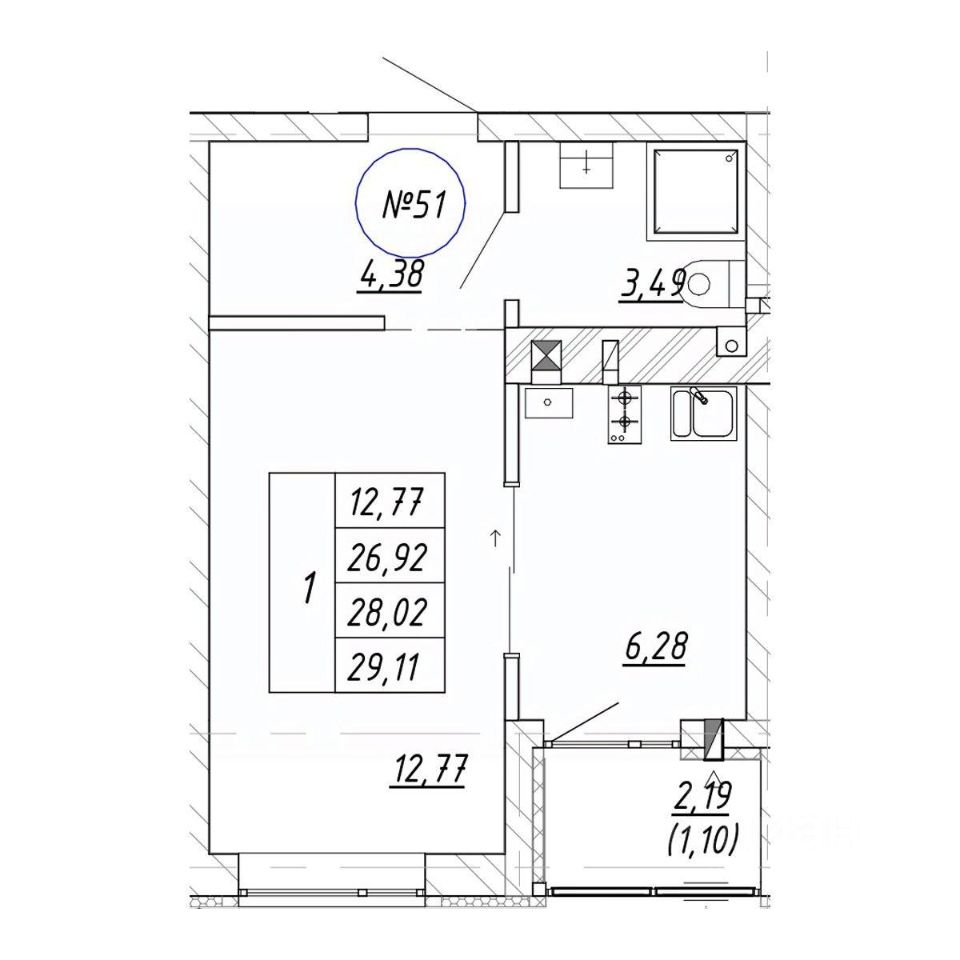Продаётся 1-комнатная квартира в строящемся доме (Дом 10.2), срок сдачи: II-кв. 2027, общей площадью 28.02 кв.м., на 1 этаже. Новый жилой комплекс "Яркий" от застройщика "СтройИнвестиция" расположен по адресу: Калининградская обл., г. Зеленоградск, ул. Центральная улица.