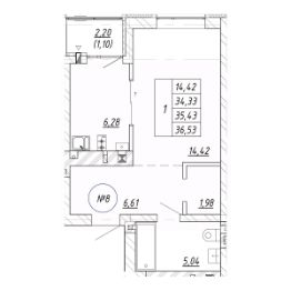 Продаётся 1-комнатная квартира в строящемся доме (Дом 8.1), срок сдачи: II-кв. 2027, общей площадью 35.43 кв.м., на 1 этаже. Новый жилой комплекс "Яркий" от застройщика "СтройИнвестиция" расположен по адресу: Калининградская обл., г. Зеленоградск, ул. Центральная улица.