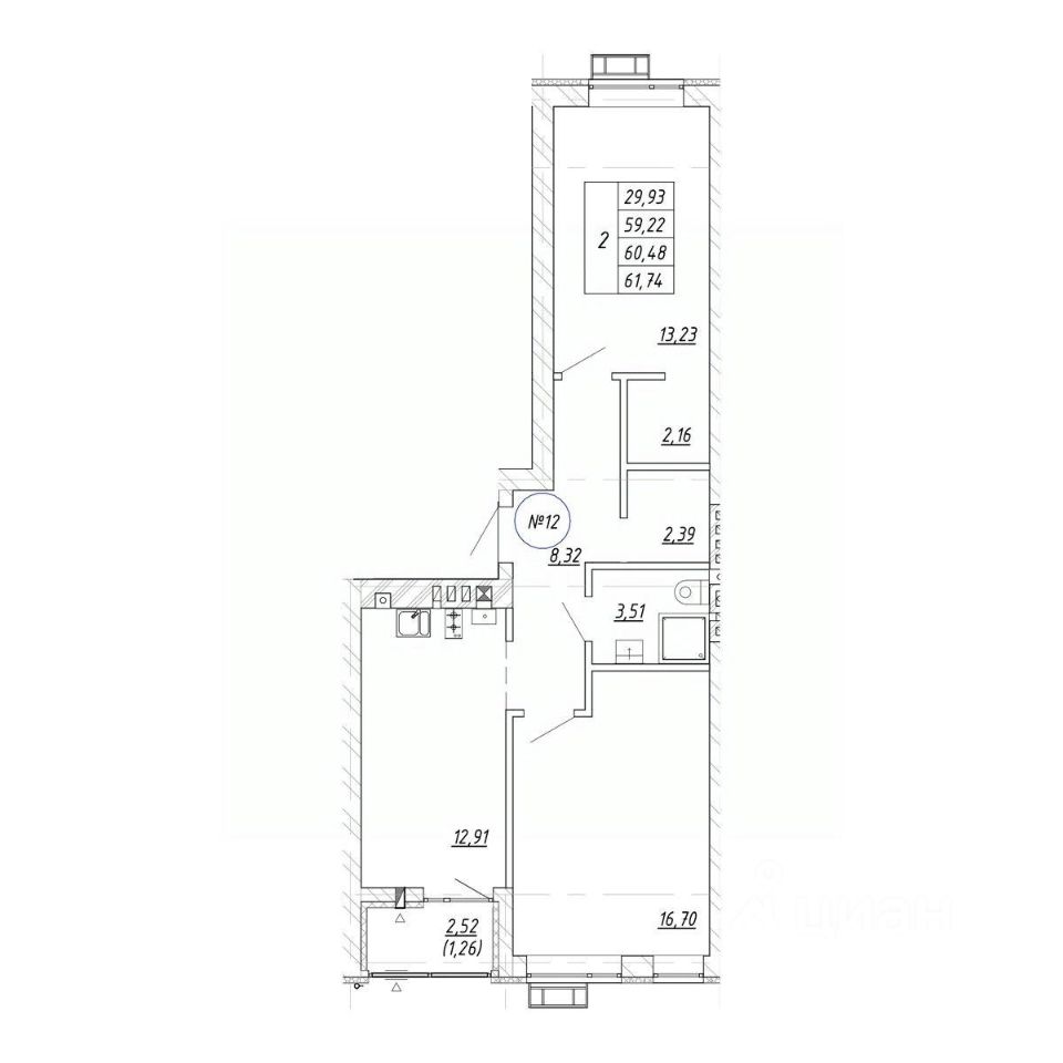 Продаётся 2-комнатная квартира в строящемся доме (Дом 12.4), срок сдачи: II-кв. 2027, общей площадью 60.48 кв.м., на 3 этаже. Новый жилой комплекс "Яркий" от застройщика "СтройИнвестиция" расположен по адресу: Калининградская обл., г. Зеленоградск, ул. Центральная улица.