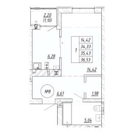 Продаётся 1-комнатная квартира в строящемся доме (Дом 9.1), срок сдачи: II-кв. 2027, общей площадью 35.43 кв.м., на 1 этаже. Новый жилой комплекс "Яркий" от застройщика "СтройИнвестиция" расположен по адресу: Калининградская обл., г. Зеленоградск, ул. Центральная улица.