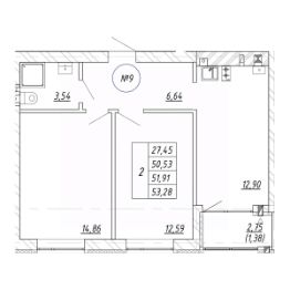 Продаётся 2-комнатная квартира в строящемся доме (Дом 9.1), срок сдачи: II-кв. 2027, общей площадью 51.91 кв.м., на 1 этаже. Новый жилой комплекс "Яркий" от застройщика "СтройИнвестиция" расположен по адресу: Калининградская обл., г. Зеленоградск, ул. Центральная улица.