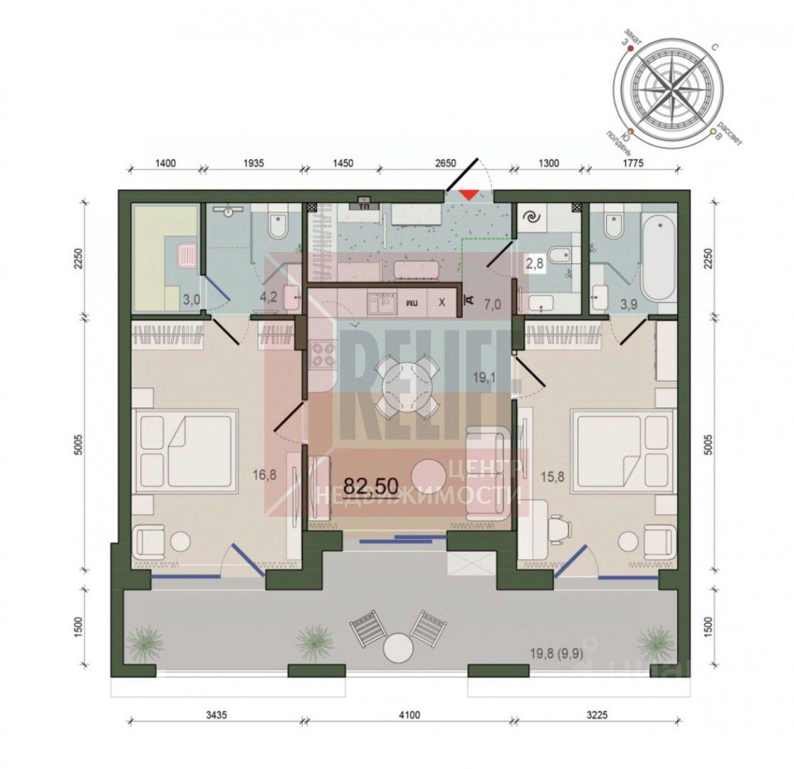 Общая площадь квартиры 82.5 кв.м. Планировка квартиры функциональна и продумана до мелочей, что обеспечивает достойное и комфортное проживание. Просторная кухня-гостиная с выходом на балкон, площадью 19.1 кв.м. Спальня 16.8 кв.м. с собственной ванной комнатой, баней и выходом на балкон, спальня 15.8 кв.м. с собственной ванной комнатой и выходом на балкон! Гостевой санузел. Высота потолков 3 метра.