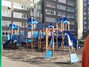 Подземный паркинг и парковка во дворе. Дом находится в тихом дворе, вдали от шума машин. Во дворе детская площадка.
