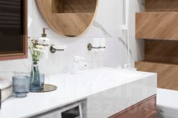 По всей площади квартиры регулируемый подогрев полов, системы контроля утечки воды.