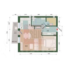 Общая площадь квартиры 47,2 кв. м, кухня-гостиная 27,6 кв. м, с выходом на террасу с панорамным остеклением, просторный балкон с потрясающим видом на утопающий в зелени город и озеро "Тихое". Входная группа в 5,8 кв. м., санузел 4,5 кв. м. где возможно поместить баню в 3,2 кв. м. Отдельная зоны для спальни в 8,7 кв. м. которую можно огородить стеклянной перегородкой в потолок.
