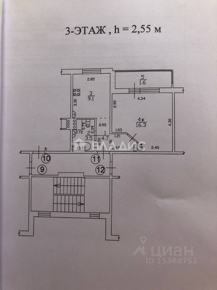 Общая площадь квартиры: 33,6 кв.м, площадь комнат (16,3), площадь кухни 9,1 кв.м., а также просторная лоджия.