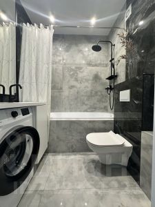 - квартира выполнена в элегантном стиле минимализма, использовано сочетание современных немецких материалов и качественной бытовой техники,