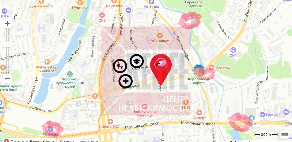 ЖК "Поцелуй" находится в непосредственной близости от объектов культурного наследия федерального значения "Крепость Фридриха Великого" - 1759 год и "Городские ворота 1" ("Королевские ворота") - 1795 года. Вся инфраструктура в шаговой доступности, а также променад реки "Преголя" и озера "Нижнего".