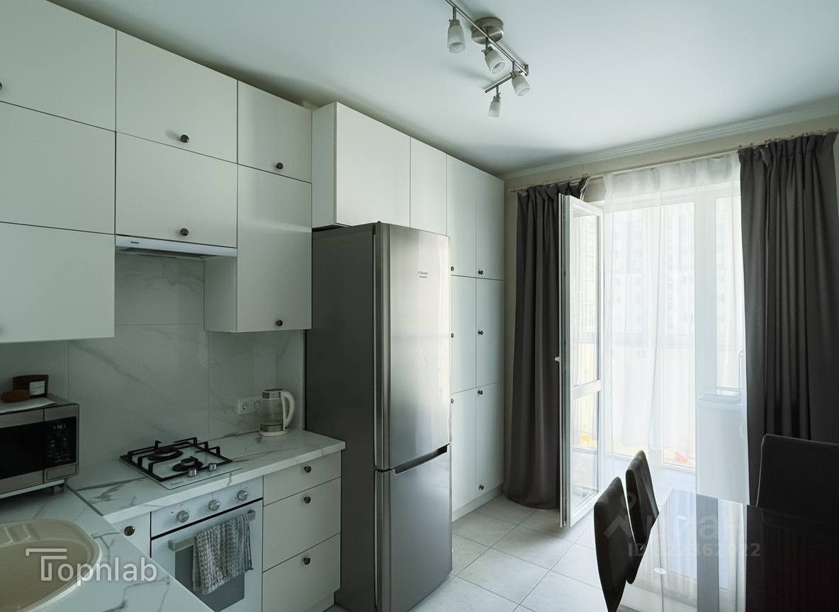 -Просторная кухня 10м (со встроенной техникой и выходом на застекленную панорамную лоджию)