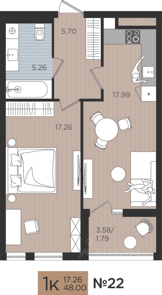 Продаётся комфортабельная 1-комнатная квартира 22 на Советском проспекте, 50 в ЖК "МОЙ ГОРОД"