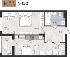 Продаётся комфортабельная 1-комнатная квартира 152 на Советском проспекте, 50 в ЖК "МОЙ ГОРОД"