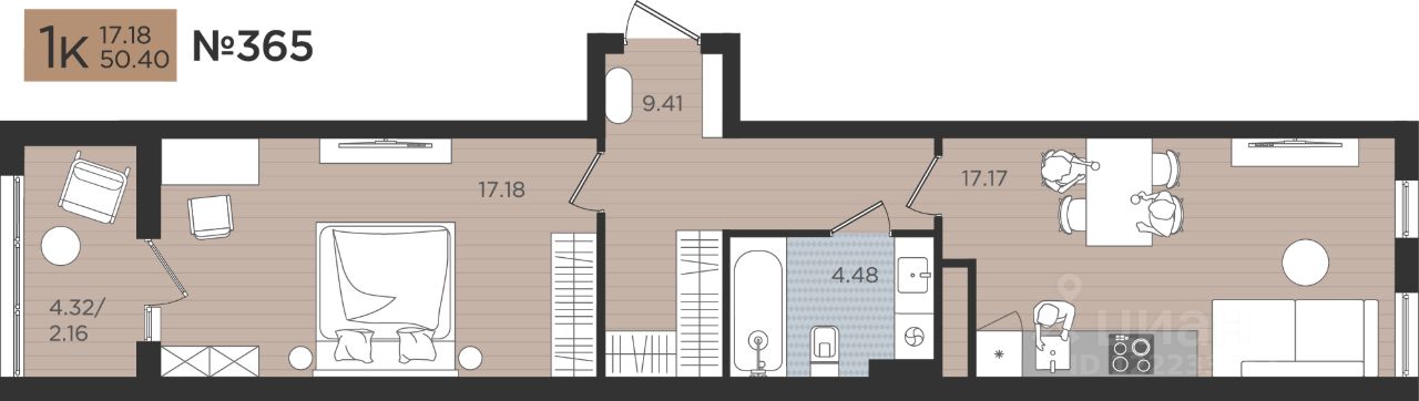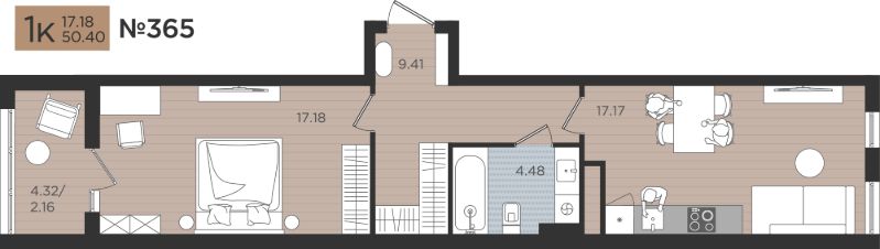 Продаётся комфортабельная 1-комнатная квартира 365 на Советском проспекте, 50 в ЖК "МОЙ ГОРОД"