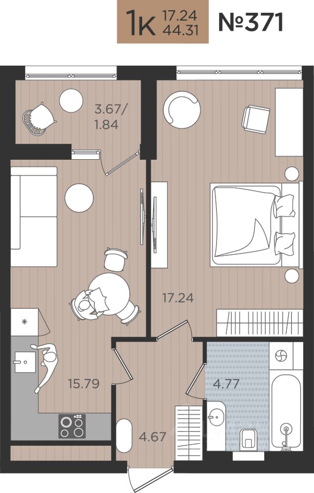 Продаётся комфортабельная 1-комнатная квартира 371 на Советском проспекте, 50 в ЖК "МОЙ ГОРОД"