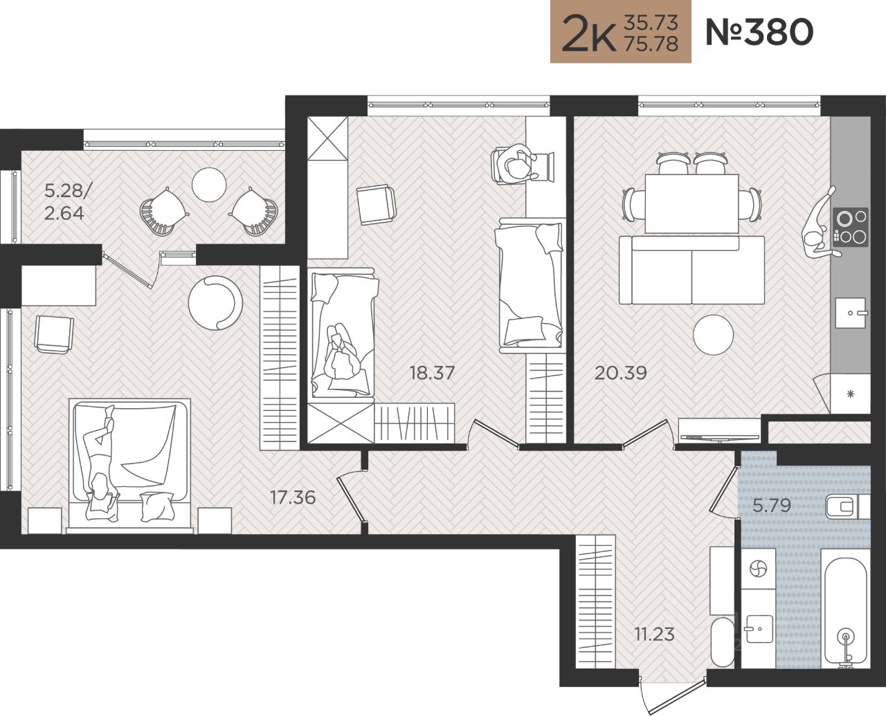 Продаётся комфортабельная 2-комнатная квартира 380 на Советском проспекте, 50 в ЖК "МОЙ ГОРОД"