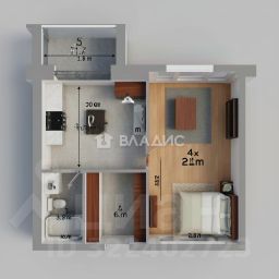 Общая площадь квартиры — 42,4 кв. м, из которых 20,8 кв. м — жилая площадь и кухня площадью 11,8 м², где вы сможете воплотить свои кулинарные фантазии.
