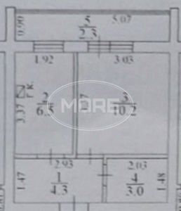 Квартира расположена на первом этаже четырёхэтажного дома, общая площадь составляет 26,3 кв. м, из которых 10,2 кв. м — жилая площадь, 6,5 кв. м — кухня. Высота потолков — 2,7 м, что создаёт ощущение простора. Окна выходят на улицу, есть лоджия.