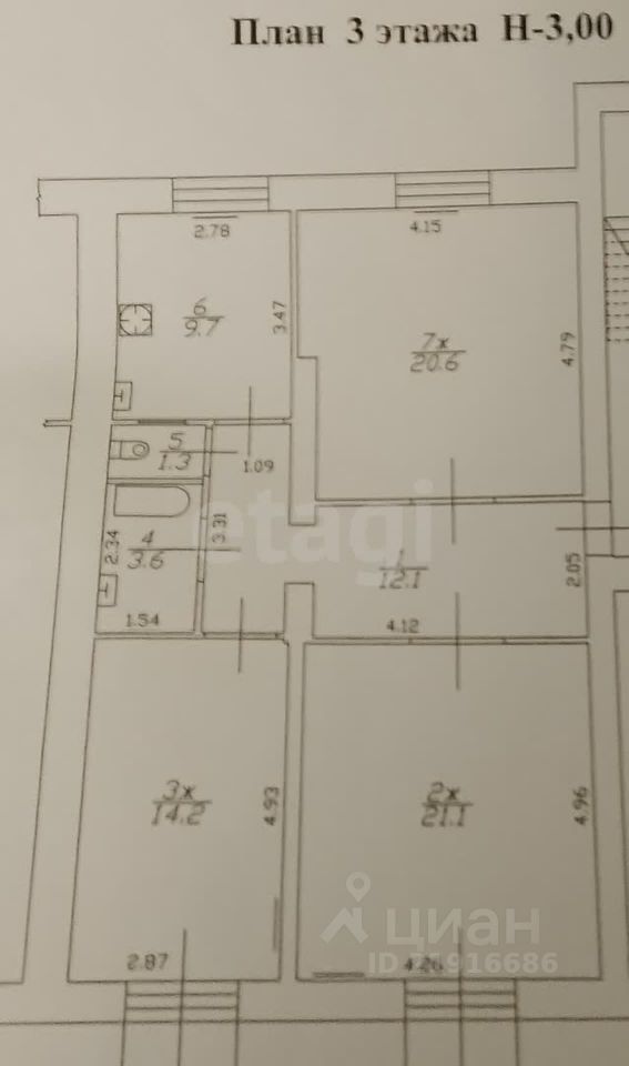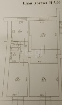 -Комнаты изолированные: 21,1 м2, 20,6 м2, 14,2 м2. Кухня 9.7 м2. Санузел раздельный. 2 балкона. Высота потолков 3 метра.