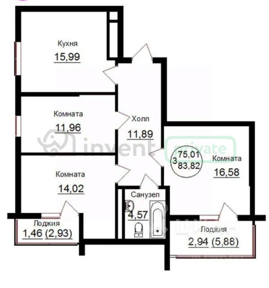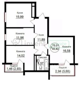 Общая площадь квартиры 84квм, три изолированные комнаты. 2 санузла, Большая лоджия. Из окон открывается вид на город.