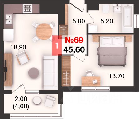 Общая площадь45,6 м²