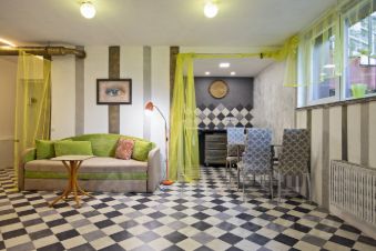Главное преимущество — отдельный вход с торца дома, который отлично просматривается с улицы и находится на пути к основному подъезду. Это удобно не только для личного пользования, но и идеально подходит для небольшой студии йоги, творческой мастерской, салона или офиса.