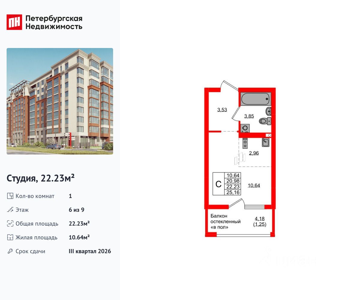 Продается уютная студия от застройщика в жилом комплексе "Консул" в Ленинградском районе. Удобная, классическая, функциональная европланировка, большая кухня-гостиная 2.96 м², просторная прихожая 3.53 м². Общая площадь студии - 22.23 м², жилая 10.64 м², высота потолка 2.7 м. Квартира продается с отделкой "Серый ключ с возможностью дозаказа NORD LINE ++". Что особенного в ЖК "Консул"? • Развитая инфраструктура • Двор без машин • Закрытая, огороженная территория • Квартиры с отделкой - заезжай и живи • Детские площадки для детей разных возрастов • Подземный паркинг и кладовые помещения