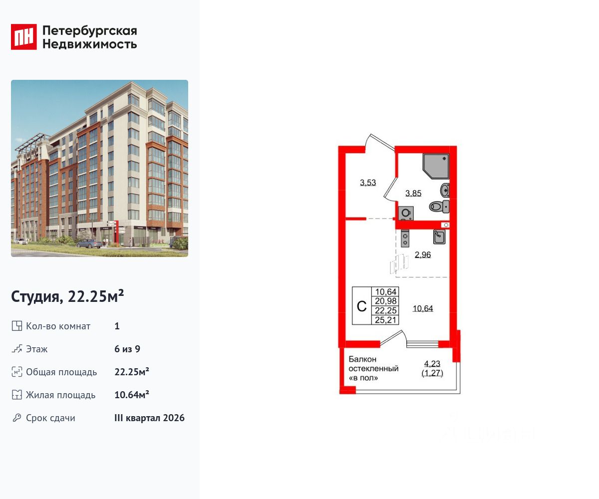 Продается уютная студия от застройщика в жилом комплексе "Консул" в Ленинградском районе. Удобная, классическая, функциональная европланировка, большая кухня-гостиная 2.96 м², просторная прихожая 3.53 м². Общая площадь студии - 22.25 м², жилая 10.64 м², высота потолка 2.7 м. Квартира продается с отделкой "Серый ключ с возможностью дозаказа NORD LINE ++". Что особенного в ЖК "Консул"? • Развитая инфраструктура • Двор без машин • Закрытая, огороженная территория • Квартиры с отделкой - заезжай и живи • Детские площадки для детей разных возрастов • Подземный паркинг и кладовые помещения