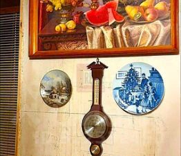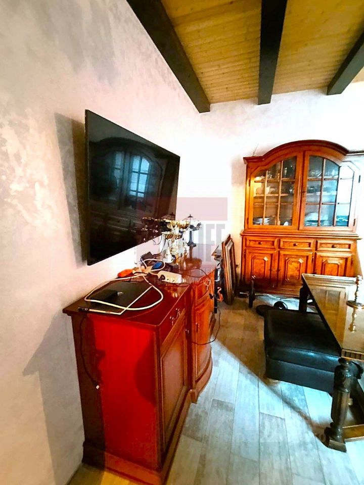Одна из комнат полностью готова и превращена в уютный уголок в стиле "шале" с атмосферной антикварной мебелью. Это готовое решение для спальни или кабинета.