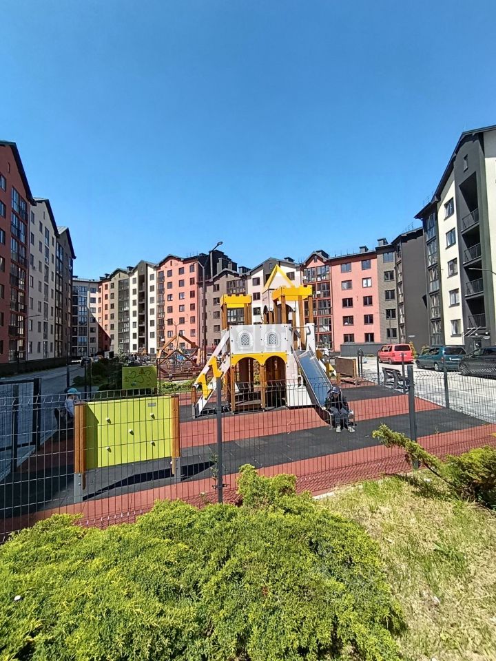 Комплекс предлагает жителям безопасную и ухоженную территорию с развитой детской площадкой, спортивной зоной. Двор свободен от автомобилей, обеспечивая спокойствие и безопасность детям.