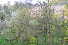 Окна выходят на тихий сад, где в выходные можно пожарить шашлычки!