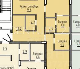 Кухня-столовая 26,6 м² — место, где можно собираться всей семьёй и принимать гостей.