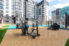 Современная детская игровая и спортивная площадки с безопасным покрытием.