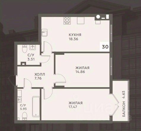 Комната 17,47 кв.м, комната 14,86 кв.м
