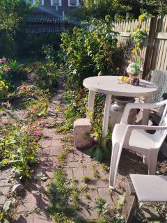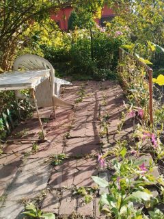 Во дворе приусадебный участок 1,5 сотки с маленьким сараем.
