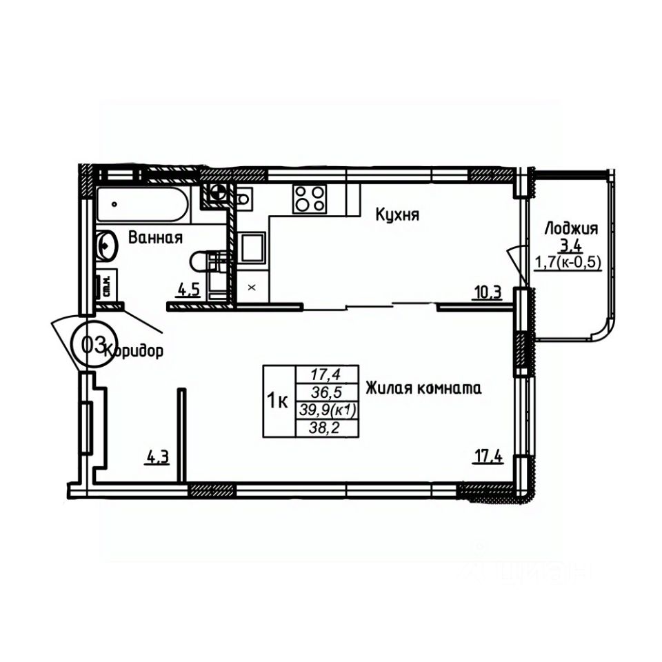 Площадь кухни10,3 м²