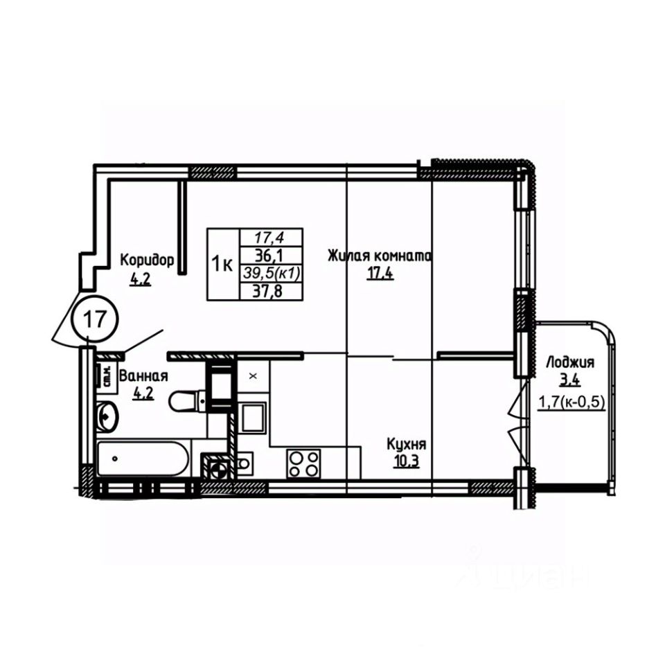 Жилая площадь17,4 м²