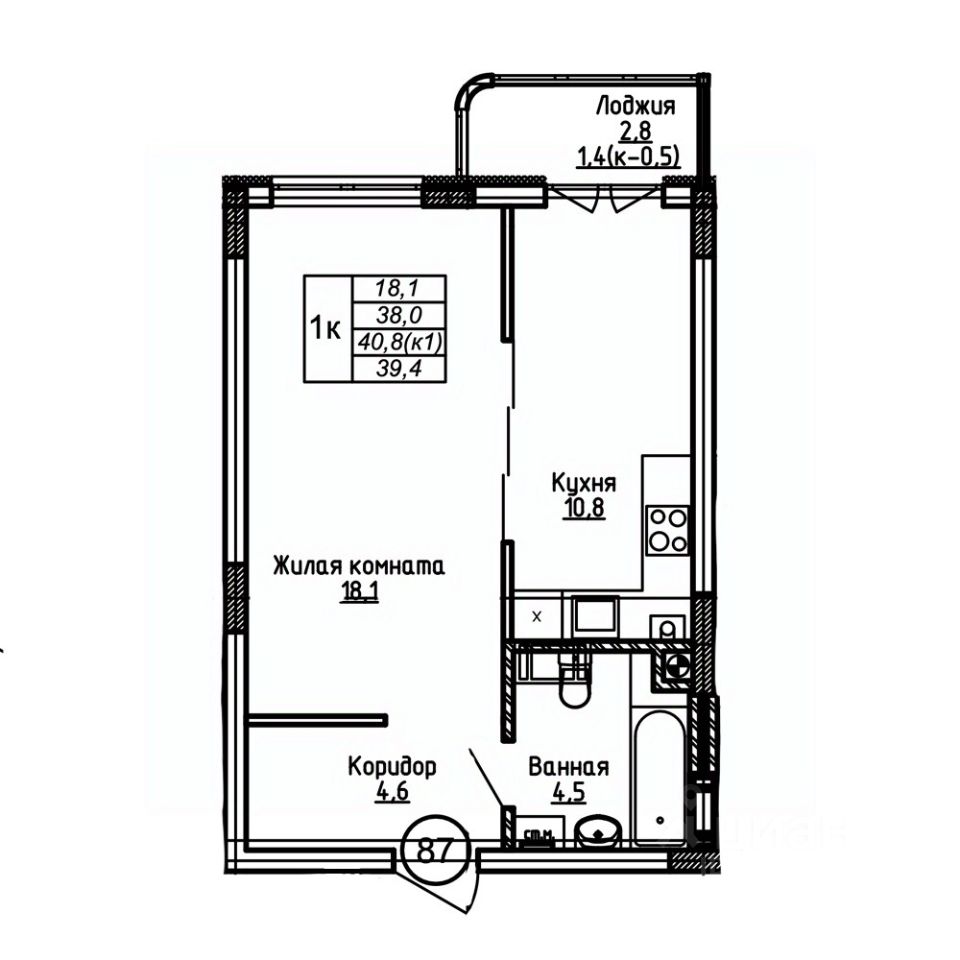 Общая площадь39,4 м²