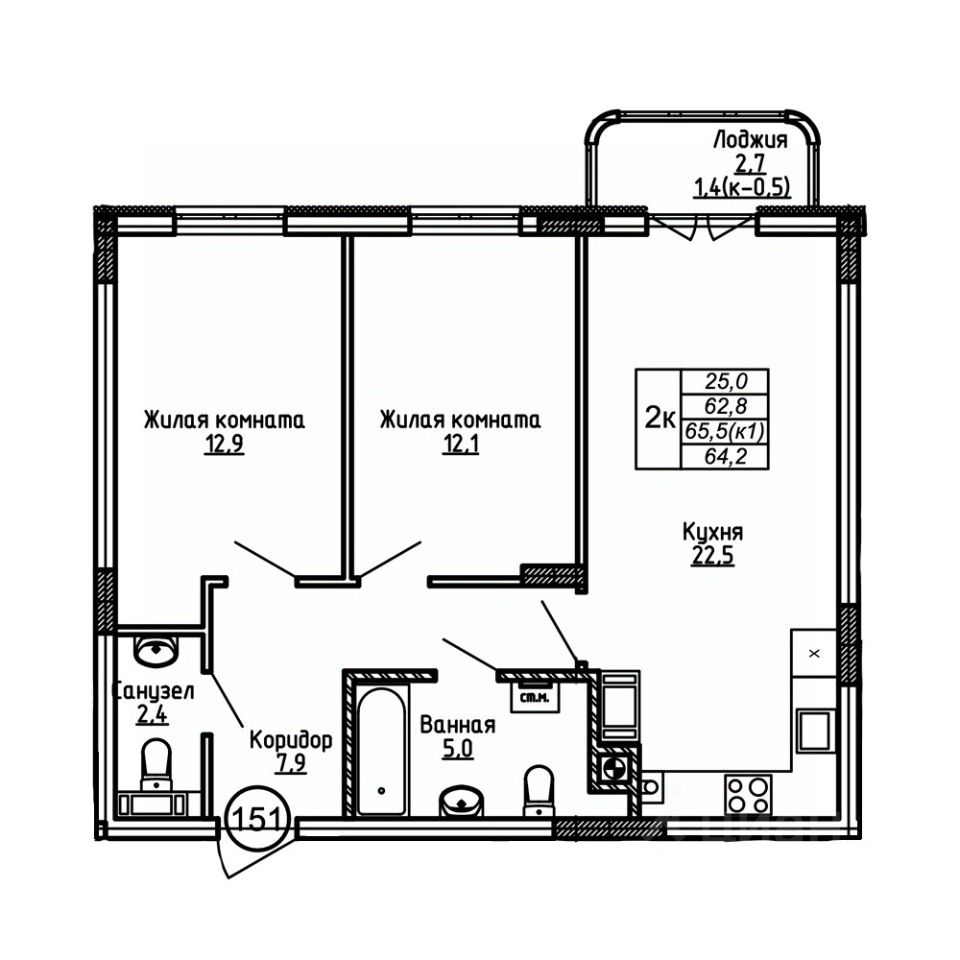 Площадь кухни22,5 м²