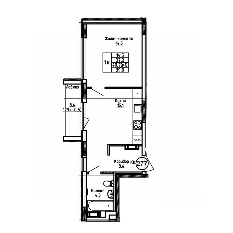 Общая площадь39 м²